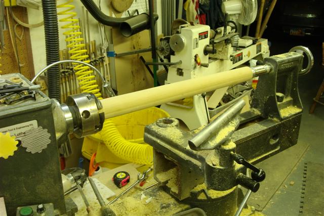 To start this thing someone, I don’t remember who, said that a 11/4 inch hole could not be drilled straight for 30 inches on a wood lathe. Well that was all the challenge I needed. I proved it could be done, then it sat on my bench for a year.