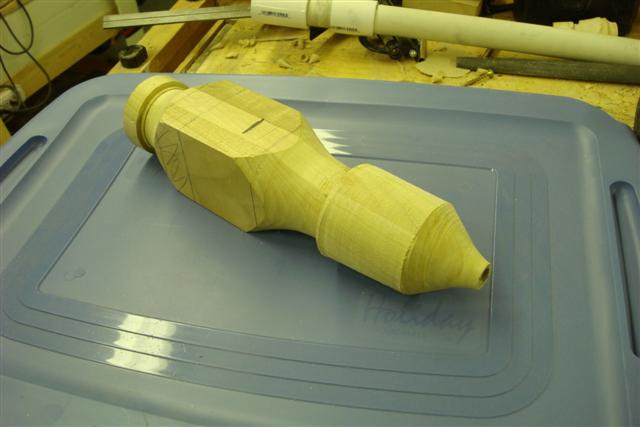 We started with a shaped blank. At this point it has a 11/4 hole down its center and it is about 1/2 inch thick.