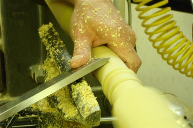 We cut the tube into 3 pieces: the mouthpiece (slow speed chamber), the true sound hole section and the body (not shown).